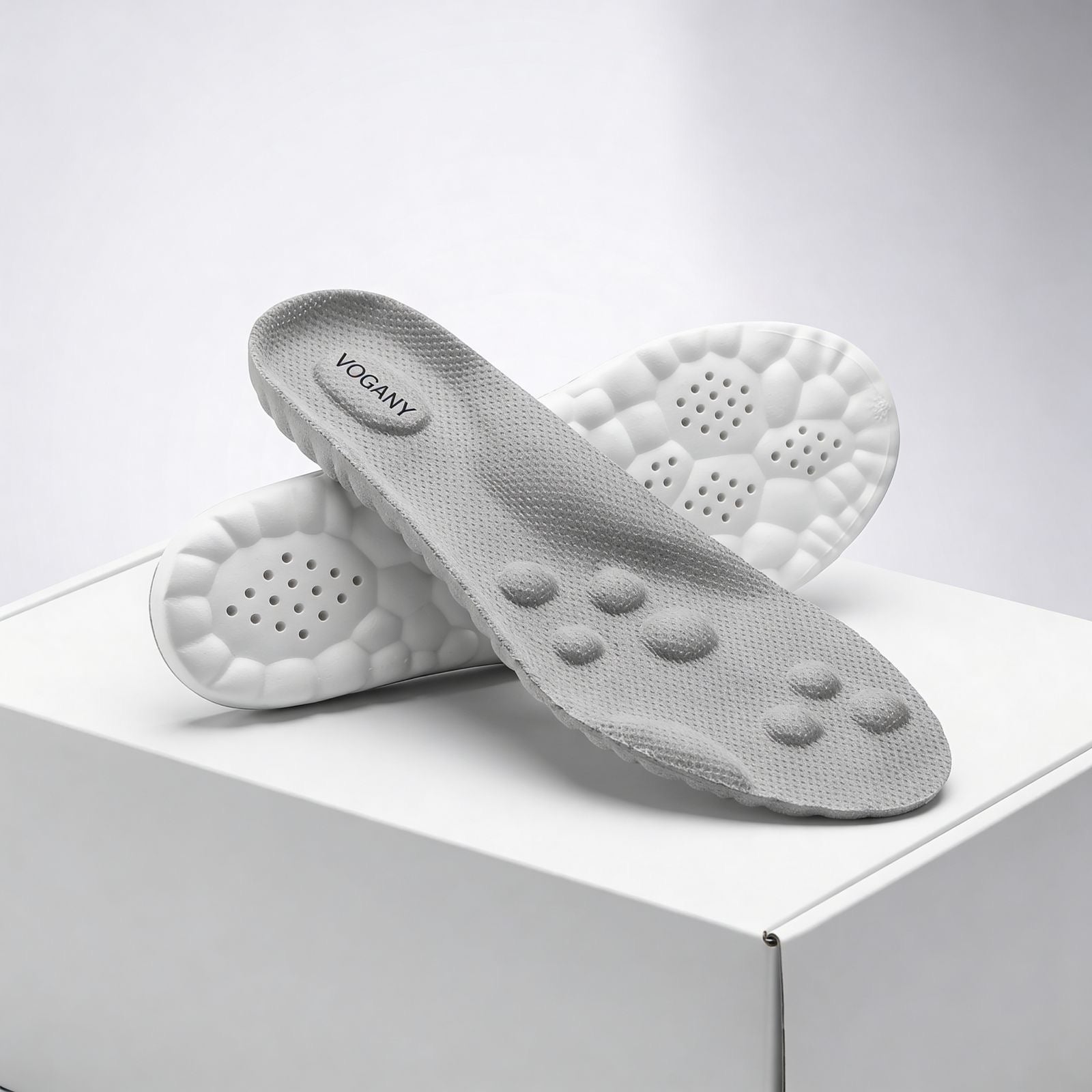 De inlegzolen Vogany helpen om je voet opnieuw uit te lijnen, de druk op gevoelige gebieden te verminderen en schokken bij elke stap te absorberen, zodat je natuurlijk en comfortabel kunt bewegen, dag na dag.