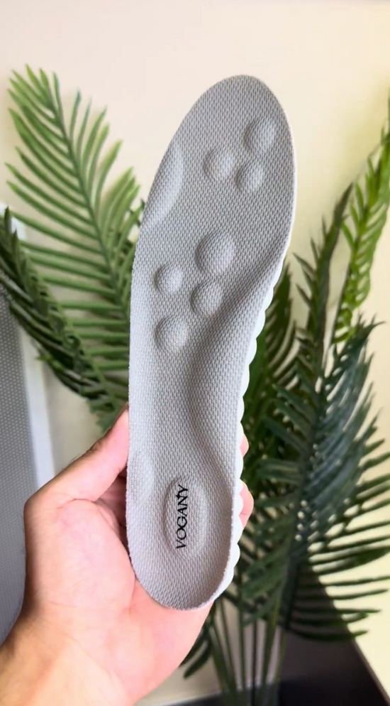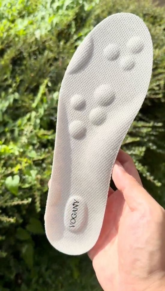 De zool Vogany verdeelt de belasting op een evenwichtige manier om pijn effectief te verlichten. Het ergonomische ontwerp ondersteunt de natuurlijke beweging van de voet, terwijl gerichte inserts de gevoelige gebieden zoals de hiel en de bal van de voet behandelen, zoals bij een acupressuurbehandeling.
